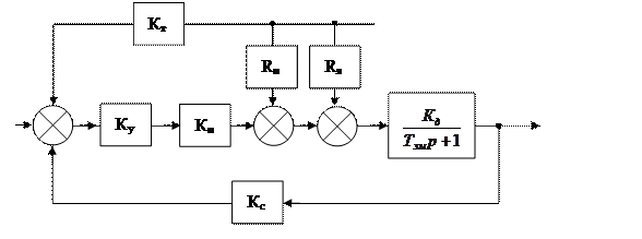 Для анализа данной системы методами ТАУ рекомендуется выполнить ее структурное преобразование, например так, как показано на рис. 5. где точка ввода сигнала обратной связи по току переклеена на выход преобразователя, а точка ввода сигнала внутренней обратной связи по э.д.с. - на вход усилителя.