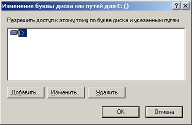 Рис. 4.42 Далее: 1. В контекстном меню выбрать команду Изменение буквы и пути диска. В открывшемся окне нажать кнопку Добавить (рис. 4.42). 2. Откроется окно диалога Добавление новой буквы диска или пути диска (рис. 4.43).