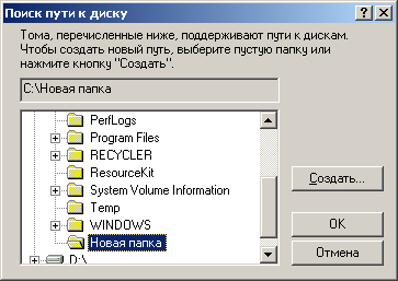 Рис. 4.44 4. Нажать кнопку Создать… и ввести её имя, например Диск Н, вместо слов Новая папка (рис. 4.45). Нажать ОК.