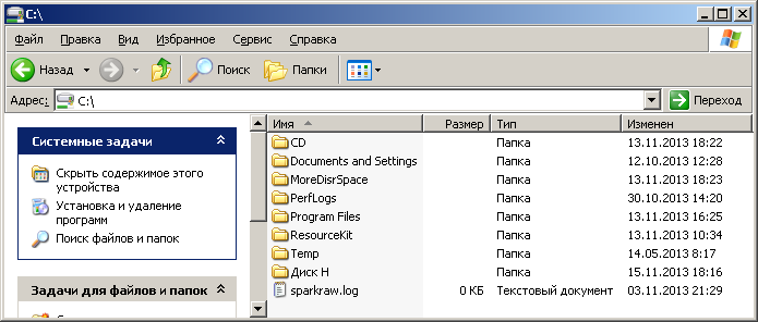 Рис. 4.39 3. Открыв папку Мой компьютер, можно увидеть папки CD и MoreDisrSpace в корневом каталоге диска С:, которыми можно пользоваться точно так же, как ранее дисками Е: и D: (рис. 4.40).