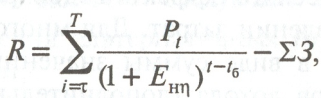 где qј— количество товарной продукции ј -го вида (качества), получаемой после осуществления оцениваемого мероприятия (ј= 1, 77,..., n); Оценку продукции, дополнительно получаемой в результате предотвращения образования отходов или их утилизации, производят по замыкающим затратам (кадастровым ценам) на аналогичную продукцию (из первичного сырья). Если периоды строительства (реконструкции), а также проектные сроки эксплуатации водоохранных сооружений и устройств в сравниваемых вариантах одинаковы (различие в сроках не превышает трех лет), а затраты и результаты в период эксплуатации существенно не меняются, то сравнение вариантов (Д), производится по формуле: R = (Э - 3) → max, (7.23) где 3 определяют по формуле (7.2); R — затраты периодические. Сравнение вариантов, характеризующихся неодинаковыми сроками строительства и разными сроками эксплуатации, а также изменяющимися в период эксплуатации затратами и результатами производят по суммарному экономическому эффекту:
