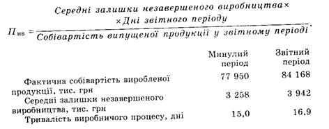 Значну частку в оборотних активах на багатьох підприємствах становить незавершене виробництво. Збільшення залишків незавершеного виробництва може свідчити, з одного боку, про розширення виробництва, а з другого — про уповільнення оборотності капіталу на цій стадії. Період перебування капіталу на стадії незавершеного виробництва (Пнв) дорівнює часу, протягом якого виробляється продукція:
