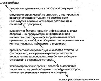 По мнению В.Н.Дружинина (1995), все интеллектуаль- ные тесты и тесты креативности можно проранжировать по шкале " регламентированность—свобода" поведения испытуемого в ситуации тестирования. Представим про- анализированные в указанной выше работе данные на ри- сунке 24.