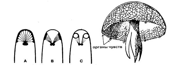 Рис. 3.2. Дифференциация органов чувств у животных на стадии элементарною поведения. Объяснения в тексте