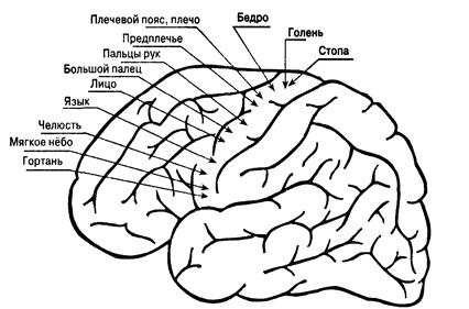 Часть II. Психические процессы. Рис. 15.1. Двигательные центры коры головного мозга у человека (по Гринштейну)