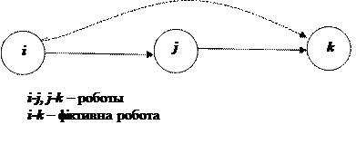 Лекція 8. Сіткове планування та управління (СПУ). Сіткові графіки. Система методів сіткового планування і керування (СПУ) орієнтована на оптимізацію планування і керування великомасштабними комплексами робіт: у будівництві і реконструкції, у наукових дослідженнях, при конструкторській і технологічній підготовці виробництва, при проектуванні нових видів виробів та ін. шляхом застосування мережної моделі. Під комплексом робіт (комплексом операцій, проектом) мають на увазі сукупність різноманітних робіт, здійснюваних для рішення визначеної задачі. Сіткова модель являє собою план виконання деякого комплексу взаємозалежних робіт (операцій), заданого в специфічній формі сітки, графічне зображення якої називається сітковим графіком. Перші системи, що використовують сіткові графіки, були розроблені і застосовані в США в 50-х роках ХХ ст. Наприклад, система СРМ (Critical Path Method – метод критичного шляху) застосовувалася при керуванні будівельними роботами; система PERT (Program Evaluation and Review Technology – метод оцінки й огляду програм) – при створенні систем «Поларис». СПУ дозволяє: - формувати календарний план реалізації деякого комплексу робіт; - виявляти і мобілізувати резерви часу, трудові, матеріальні і грошові ресурси; - здійснювати керування комплексом робіт із принципу «ведучого ланки» із прогнозуванням і попередженням можливих зривів у ході робіт; - підвищувати ефективність керування в цілому при чіткому розподілі відповідальності між керівниками різних рівнів і виконавцями робіт. Головними елементами сіткової моделі є події і роботи. Термін робота використовується в СПУ в декількох змістах. По-перше, це дійсна робота – протяжний у часі процес, що вимагає витрат ресурсів (праці, матеріальних ресурсів, часу). По-друге, це очікування – протяжний у часі процес, що не вимагає витрат праці (наприклад, сушіння після фарбування, твердіння бетону й ін.). По-третє, це залежність, чи фіктивна робота – логічний зв'язок між двома чи декількома роботами (подіями), які не потребують витрат праці, матеріальних чи ресурсів часу. Вона вказує, що можливість виконання однієї роботи безпосередньо залежить від результатів іншої. Тривалість фіктивної роботи дорівнює нулю. Подія – це момент завершення якого-небудь процесу, що відбиває окремий етап виконання проекту (комплексу робіт). Подія може здійснитися тільки тоді, коли закінчаться всі роботи, що їй передують. Подія має двоїстий характер: для всіх безпосередньо попередніх їй робіт воно є кінцевою, а для всіх безпосередньо наступних за нею – початковою. Вважається, що подія не має тривалості, тобто здійснюється як би миттєво. Серед подій сіткової моделі виділяють вихідна і завершальна події. Вихідна подія не має попередніх робіт і подій. Завершальне подія не має наступних робіт і подій. Події на сітковому графіку (чи на графі), зображуються колами (вершинами графа), а роботи – стрілками (орієнтованими дугами), що показують зв'язок між роботами. Фрагмент сіткового графіка наведений на мал.6.1.