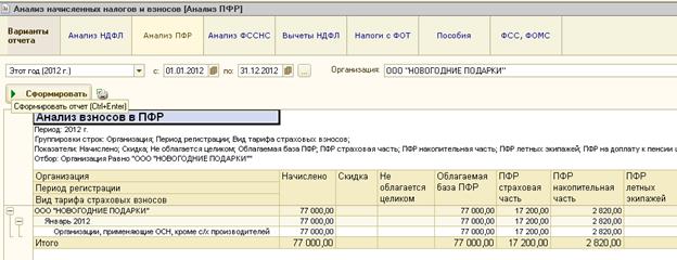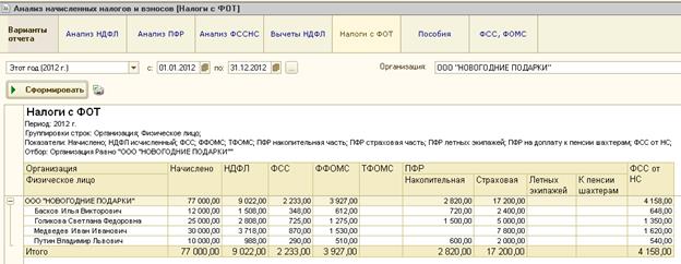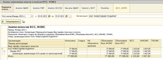 Анализ начисленных удержаний и налогов смотрим в документе Анализ начисленных налогов и взносов по траектории «Зарплата - Анализ начисленных налогов и взносов»