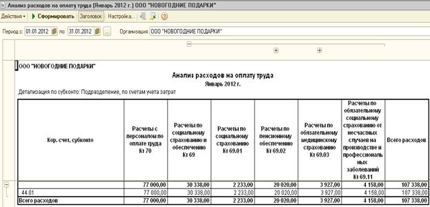 «Зарплата – Анализ расходов на оплату труда» с указанием счетов и субсчетов.