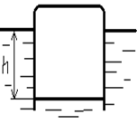 2. Полый тонкостенный цилиндр опустили в воду вверх дном. Цилиндр плавает так, что уровень воды внутри цилиндра находится на глубине h = 20 см от поверхности окружающей воды. Плотность воды 1000 кг/м3, вес цилиндра 2 кГ (20 Н). Определить площадь донышка цилиндра.