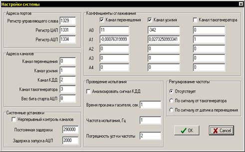 Рисунок 5.1 – Внешний вид установки Нижняя головка гасителя не демонтируется, а для выполнения прокачки гасителя нижние захваты установки соединяются с проушинами рамы тележки в передвижном варианте исполнения. Винт, расположенный в основании рамы установки, позволяет регулировать высоту расположения захватов установки. При вращении ручки вала винта перемещаются поперечина и нижние крепления рычагов, что вызывает подъем либо опускание всей конструкции с одновременным ее наклоном. Малая пружина удерживает конструкцию в исходном положении. Установка размещена на тележке с ручкой и колесами для перемещения установки вдоль состава. Электронный блок содержит электрические коммутирующие элементы и усилители измерительных каналов перемещения и усилия. На лицевой панели блока находится общий выключатель и кнопки " Пуск" и " Стоп", управляющие работой магнитного пускателя. Внутри электронного блока расположены: стабилизированный источник питания, выполненный на интегральных микросхемах с номинальным напряжением +15 В и –15 В; плата усилителей каналов перемещения и усилия. Сигналы от датчиков подведены от разъемов к плате проводами минимальной длины в экранирующей оболочке, для снижения составляющей помехи в сигнале. Выходные сигнальные провода подключены к выводам " ЭВМ" на тыловой панели. Кабелем, входящим в комплект установки, данный выход соединяется с линейным входом персонального компьютера. Разработанная программа предусматривает три режима работы: " Настройки системы и параметров диаграммы", основной режим – " Испытание", а также " Протокол испытаний". В режиме " Испытание" (рисунок 5.2) осуществляется запись рабочей диаграммы и определение технического состояния гидравлического гасителя колебаний. В режиме " Настройки системы и параметров диаграммы" (рисунок 5.3) оператору предоставляется возможность изменить различные системные установки и позволяет сконфигурировать работу программного обеспечения в соответствии с используемыми аппаратными средствами. Пункт " Проведение испытания" позволяет установить длительность прокачки гасителя перед выполнением непосредственно измерения. Процедура диагностирования основана на анализе полученной рабочей диаграммы с помощью программной нейронной распознающей сети. Входные параметры распознающей сети – точки рабочей диаграммы и частота колебаний.