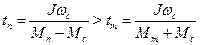 т.е. пропорционально запасу кинетической энергии при тормозной мощности равной пусковой. Время свободного выбега привода при
