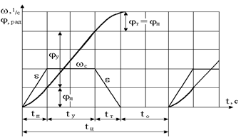 т.е. практически при заданной мощности холостого хода определяется двойным запасом кинетической энергии привода и является относительно большим. Угол поворота вала двигателя за время пуска, торможения