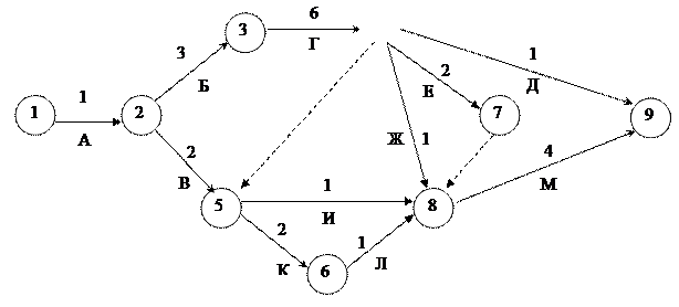 Потрібно скласти: 1 Мережевий граф, що відповідає цьому проекту. 2 Знайти резерви часу для всіх операцій проекту. 3 Знайти критичні операції і критичний шлях у графі. 1 Мережевий граф цього проекту виглядає таким чином: