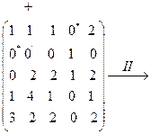 Тепер уже не вилучених нулів немає.. Переходимо до етапу VІІІ. Тут h=1 і переходимо до етапу ІХ. В результаті одержуємо матрицю: