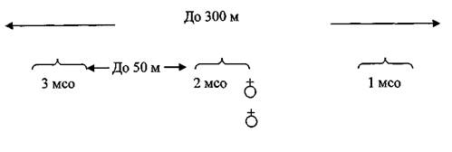 а. В наступлении мсо наступает в составе взвода, фронт наступления до 50 м. В пешем порядке боевой порядок состоит из цепи л/с с интервалом 6-8 метров (8-12 шагов) и боевой машины, которая может находится в цепи или отставать от неё на расстояние до 50 метров, если в обороне противника много средств ближнего поражения бронетехники.