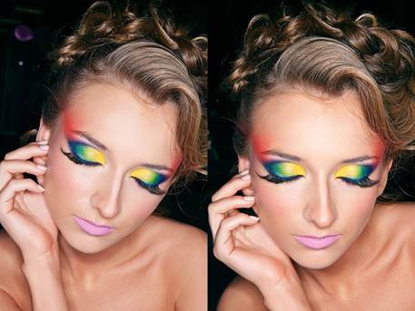 Чтобы мейк-ап для фотосессии получился действительно качественным и красивым, лучше всего воспользоваться услугами профессионального визажиста. Фотомакияж значительно отличается от повседневного мейк-апа. Он должен быть выполнен по-настоящему безупречно, поскольку на снимке, особенно на портрете крупным планом, станут видны все детали лица, в том числе и самые мелкие погрешности макияжа или дефекты кожи. Впрочем, иногда бюджет съемки может быть ограничен, и тогда модели приходится выполнять макияж самостоятельно, в домашних условиях или непосредственно перед фотосессией. В этом случае вам пригодятся некоторые правила и секреты. Прежде всего, необходимо заблаговременно позаботиться о состоянии своей кожи. Она должна быть увлажнена, не иметь покраснений и шелушений. Хотя все изъяны кожи можно скрыть профессиональными средствами, после их нанесения останется рельеф, который невозможно убрать полностью. Для лица следует провести очищающие процедуры. После этого при помощи увлажняющих или питательных масок нужно улучшить тонус кожи. Кроме того, перед фотосессией обязательно сделайте коррекцию бровей, а также поухаживайте за кожей вокруг глаз. Перед съемкой не стоит проводить вечер за бокалом вина или другого спиртного, поскольку в результате кожа станет сухой, а под глазами могут появиться неэстетичные «мешки». Перед нанесением макияжа следует тщательно очистить кожу шеи и лица, а затем нанести тональную основу. В качестве последней нужно выбирать тональное средство с плотной текстурой, который позволит скрыть все недостатки. Оно должно иметь легкий желтоватый оттенок, поскольку при вспышке кожа модели приобретает холодный тон. Необходимо, чтобы тональная основа под мейк-ап не имела резких границ. Все места перехода должны быть незаметными. Тон крема должен соответствовать цвету кожи или быть на 1 оттенок темнее. Наносить его нужно при помощи губки. Помните, что цвет лица, декольте и шеи не должны отличаться друг от друга. Если необходимо, тонируйте также уши. Цветным корректором или консилером обработайте кожу под глазами. Против синевы используйте корректирующее средство желтого или персикового цвета, против красноты - зеленого. С коричневым пигментом на лице прекрасно справится сиреневый цвет. Пудру светлых тонов нанесите кисточкой на Т-зону, затем придайте коже бархатистость при помощи пудры теплого оттенка. В обычной жизни можно использовать пудры с добавлением бронзатора и перламутра, чтобы подчеркнуть рельефность и красоту кожи. На съемках это недопустимо, поскольку любой бронзатор станет давать неправильный эффект на фотокамере. Опытные визажисты применяют только матовые текстуры. Кроме того, обычно профессиональные пудры для фото- и видеосъемки - рассыпчатые. Компактные пудры созданы для того, чтобы их можно было носить с собой в дамской сумочке. так его «видит» камера.