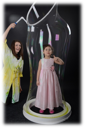 · Вторая половина ШОУ целиком и полностью занимает интерактив с гостями праздника. Во время, которого каждый сможет получить уникальную возможность побывать в гигантском мыльном пузыре!