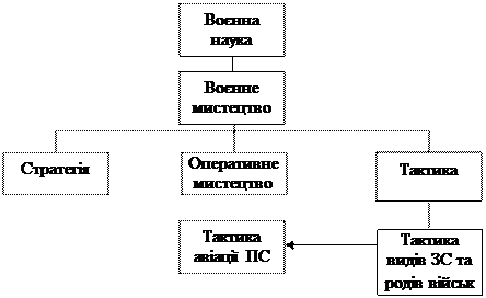 Досвід ведення бойових дій у сучасних війнах і військових конфліктах показує, що без науки армію, яка може успішно вирішувати поставлені перед нею завдання побудувати неможливо. Тому військове керівництво приділяє велику увагу питанням розвитку і вдосконалення воєнної науки. Основною галуззю воєнної науки є воєнне мистецтво, яке зароджувалось разом із появою армії. На сьогоднішній день воєнне мистецтво охоплює теорію і практику підготовки та ведення воєнних дій, які є об’єктом його дослідження. Воєнні дії розглядаються як організоване застосування зброї і техніки військовими формуваннями супротивних сторін у збройній боротьбі і складають основний її зміст. Досвід антитерористичної і миротворчої діяльності свідчить, що вона також супроводжується організованим застосуванням зброї і техніки. Отож, якщо організоване застосування зброї і техніки є об’єктом вивчення воєнного мистецтва, то антитерористичні і миротворчі дії, як об’єкт дослідження підпадають під воєнне мистецтво. Тому об’єктом дослідження воєнного мистецтва стає не однорідне явище – воєнні дії, а явище, що має три складові елементи(три роди діяльності): воєнні, антитерористичні і миротворчі дії. На сучасному етапі розвитку суспільства структура воєнного мистецтва включає три складові елементи: теорію і практику підготовки і ведення воєнних, антитерористичних та миротворчих дій, а не один елемент(воєнні дії), як це було раніше. Таким чином, воєнне мистецтво – це теорія і практика підготовки і ведення воєнних, антитерористичних і миротворчих дій. Воєнні дії – це організоване застосування зброї і техніки у збройній боротьбі між законно створеними військовими формуваннями супротивних сторін з метою розгрому формувань зовнішнього противника. Антитерористичні дії – це організоване застосування зброї і техніки у збройній боротьбі між законно і незаконно створеними військовими формуваннями супротивних сторін з метою розгрому незаконно створених військових формувань. Миротворчі дії – це організоване застосування зброї і техніки у збройній боротьбі військовими формуваннями нейтральної сторони між супротивними сторонами з метою їх примирення або припинення воєнних дій. Воєнне мистецтво має три складові елементи: · Стратегічне мистецтво(стратегія); · Оперативне мистецтво; · Тактичне мистецтво(тактика). Стратегічне мистецтво (стратегія) є вищою галуззю мистецтва і являє собою систему знань, що охоплює теорію і практику підготовки і ведення: а) для воєнних дій – операцій стратегічних об’єднань і збройної боротьби в цілому; б) для антитерористичних дій – загальних антитерористичних операцій стратегічних об’єднань (об’єднаних сил); в) для миротворчих дій – загальних миротворчих операцій стратегічних об’єднань (об’єднаних сил).