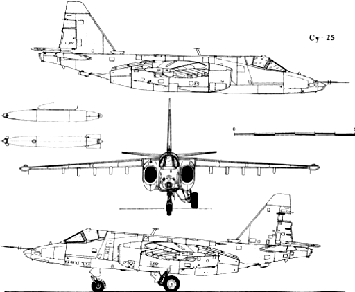 5.2.3. Бортовий комплекс озброєння штурмовика Су-25 Бортовий комплекс озброєння штурмовика Су-25 складається із: прицільного обладнання, бомбардувального озброєння, артилерійського озброєння, керованого ракетного озброєння, фотоконтрольного обладнання. Прицільне обладнання забезпечує вирішення завдань застосування озброєння по наземним і повітряним цілям в умовах їх візуальної видимості. Бомбардувальне озброєння включає: 8 однозамкових держаків, що призначені для підвіски, транспортування і скидання бомб калібру від 50 до 500 кг, підвісні паливні баки ємністю 800 л, запалювальні баки, разові бомбові касети і контейнери малогабаритних вантажів. Артилерійське озброєння призначене для ведення стрільби по наземним і повітряним цілям. Артилерійське озброєння складається із однієї двоствольної, вмонтованої в фюзеляж, гарматної установки ВПУ-17А, в якій використовується гармата ГШ-2-30 з боєкомплектом 250 патронів. Для підвищення потужності артилерійського озброєння штурмовика передбачена установка під крилом 4-х з’ємних підвісних гарматних установок СППУ-22 з гарматою ГШ-23 і боєкомплектом 260 снарядів або 4 з'ємних нерухомих гарматних установок СНПУ-25 з гарматами ГШ-30 і боєкомплектом по 250 снарядів, що дозволяють вести стрільбу в передню і задню півсферу із двох фіксованих положень. Система ракетного керованого озброєння Х-25, С-25А, Х-29Л призначена для ураження наземних(надводних) малорозмірних рухомих і нерухомих цілей. Система ракетного керованого озброєння Р-60 призначена для ураження вертольотів (літаків) противника в ближньому повітряному бою. Система ракетного некерованого озброєння призначена для ураження повітряних і наземних цілей противника і забезпечує застосування НАР типу С-5, С-8, С-24, С-25. Одночасно можуть застосовуватись ракети тільки одного типу. Фотоконтрольне обладнання призначене для перевірки правильності прицілювання при роботі з прицілом як при бойовому застосуванні озброєння, так із навчальною метою, а також для контролю результатів стрільби з гармат і при пуску ракет. Таким чином, аналіз ЛТД, обладнання і озброєння показує, що літаки-штурмовики володіють такими бойовими властивостями: - високою живучістю; - високою маневреністю, що забезпечує ведення штурмових дій і повітряного бою; - наявність різноманітного і потужного озброєння (бомбардувального, ракетного і артилерійського); - наявність сучасного пілотажного, навігаційного і прицільного обладнання, а також засобів РЕБ; - здатність ефективно виявляти і уражати наземні(морські) малорозмірні і рухомі цілі, а також вертольоти (літаки) противника в повітрі; - гарні злітно-посадкові характеристики і достатня прохідність по ґрунту, що дозволяє літаки працювати з ґрунтових аеродромів обмежених розмірів. Так, наприклад, розбіг літака складає 550-800 м, а пробіг 560-750 м; - здатність успішно долати ППО противника. Досвід бойового використання літаків-штурмовиків в республіці Афганістан підтвердив їх високу ефективність. Літак Су-25 експлуатувався в умовах інтенсивного бойового використання в РА з 1980 р. до самого виводу радянських військ з цієї країни. Таким чином ЛТД літаків-штурмовиків, їх обладнання і озброєння дозволять їм виконати поставлені завдання по ураженні як наземних (морських), так і повітряних цілей вдень і вночі в ПМУ і СМУ з високою ефективністю. 5.2.4.