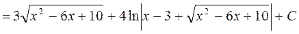 3. Полученный таким образом интеграл представляют в виде суммы двух интегралов, первый из которых вычисляют методом подведения под знак дифференциала; второй – способом указаным в начале этого параграфа Например: