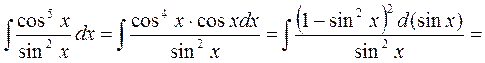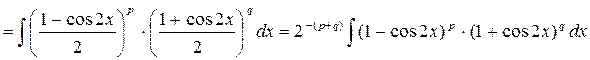 Далее возведем двучлены в указанные степени, получим вновь четные и нечетные степени синуса и косинуса. Нечетные степени проинтегрируем как указано в пункте а), четные степени снова понизим по формулам «четных степеней».