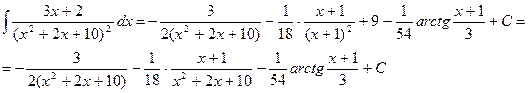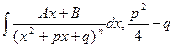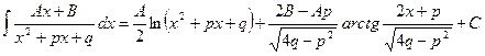 В первом интеграле числитель является производной знаменателя; поэтому так как x2+рх+q> 0 для любого значения х. Второй интеграл, как уже было отмечено, находится по формуле
