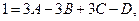 Полагая х=2, найдем 33=16А, т. е. А = 33/16. При х = — 2 получим — 31 = 16С, т.е. С=— 31/16. Если х = 0, то 1==4А — 8B + 4C + 8D. Заменив А и С их значениями, получаем
