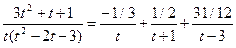 если t=0, то 1=-3А, т.е. А=-1/3, если же t=-t, то 2=4В, т.е. В=1/2, наконец, если t=3, то 31=12С, т.е. С=31/12 Итак,
