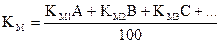 Производительность шаровых мельниц (по сухому материалу) в т/ч определяется по формуле: Для мельницы 1456 эта формула имеет вид: для мельницы Æ 2× 10, 5 где D - внутренний диаметр барабана за вычетом толщины футеровки, мм; L - внутренняя длина барабана, м; GМ - загрузка мельницы мелющими телами, т; KМ - коэффициент размолоспособности, определяемый технологическим регламентом, ориентировочные данные приведены в табл. 1; KТ - поправочный коэффициент на тонкость помола, принимаемый по табл. 2; KЭ - коэффициент эффективности помола, принимаемый по табл. 4. При совместном помоле разных материалов, коэффициент размолоспособности определяется по формуле: где KМ1, KМ2, KМ3 - коэффициент размолоспособности соответствующих материалов; А, В, С... - процентное содержание этих материалов в размалываемой смеси. Таблица 1