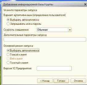 Шаг5. Оставляем настройки 1С по умолчанию. Нажимаем Готово!