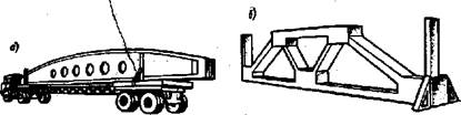 а~ яусто^лый «лсж для сборного строительству аяаыа sepufwim e жруглчыъ Густотой " " " *** Рис. П.6. Блок-квартира б~ зобетонных панелей и блоков. Такие изделия и дета лиудостав лен В качестве элементов вытяжной вентиляции применяются бло Достижением сборного железобетона в санитарной технике, значительно ускоряющим процесс монтажа зданий, следует признать применение объемных кабин санитарных/ узлов. Санитарно-технические кабины доставляют на строительную площадку в законченном виде и после установки включают в общую сеть канализации, горячего и холодного водоснабжения. Элементы лестниц из сборного железобетона изготовляют в формах, позволяющих получать изделие определенного ступенчатого профиля. Лестничные площадки в виде прямоугольных плит, равно как н марши, изготовляют из бетона класса не ниже В15 (марки не ниже 200) и армируют стальной сеткой. Лестничные площадки, как правило, выстилают керамической плиткой. Для покрытия жилых и промышленных зданий широкое применение получили совмещенные крыши, устраиваемые из сборных железобетонных элементов. В конструкции такой крыши сочетаются несущие, теплоизоляционные, вентиляционные и водосбрасы-вающие функции. В гражданском строительстве имеется достаточный опыт монтажа жилых зданий из объемных железобетонных блок-комнат и блок-квартир. Такие блок-квартиры изготовляют на специализированных домостроительных комбинатах в виде объемной железобетонной конструкции. Идея монтажа зданий из заранее изготовленных блоков возникла в начале XX в. (патент № 5882, выданный Русской Привилегией в 1901 г.), а реально осуществлена эта идея была в 1955 г. Готовые блок-квартиры доставляют на место строительства и устанавливают с помощью козловых или других кранов (рис. 11.6). В строительстве промышленных зданий и сооружений применяют сборные детали и изделия, аналогичные изделиям для гражданских зданий. Однако для монтажа каркаса промышленных зданий используют колонны, балки, подкрановые балки и фермы, имеющие отличительные особенности. Колонны могут быть бесконсольные, одно- или двухконсольные, сплошные — прямоугольного или таврового сечения, двухветвевые и решетчатые. Наиболее высокие технико-экономические показатели имеют двухветвевые колонны; при одинаковой несущей способности они имеют значительно меньшую массу, что позволяет увеличивать их длину до 35 м при ширине в 1 м. *Все разновидности колонн выполняют из тяжелого бетона iacca не ниже В45... В50 (марки не ниже 300... 400), армнрован- эго обычной или предварительно напряженной арматурой. Балки, применяемые при монтаже промышленных зданий, мо- jfT быть прямоугольного, таврового или двутаврового сечения в