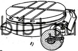 Поворотные столы применяют при значительных программах выпуска для обработки заготовок во время установки другой заготовки, подлежащей обработке, в другой позиции.