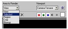 - В окне Rendered Frame window > Area To Render в выпадающем списке выберите Selected, кликните Render.