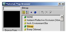 - В Material/Map Browser, выберите двойным щелчком Bitmap.