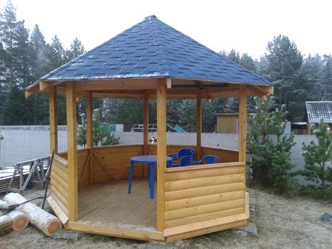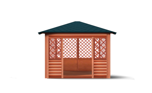 Беседка квадратная 3м*3м. Характеристика: Квадратная беседка с площадью в 9 квадратных метров приятно удивит внутренним простором. Она хорошо впишется в дизайн любого участка и будет местом, в котором приятно провести время летним вечером. Четыре задние секции закрыты секциями - сетками по которым можно пустить вьющееся растение. Вход по желанию можно сместить к одному или другому краю или сделать по центру. Беседку можно ставить даже на наклонных основаниях так как полы, в отличие от многих финских беседок, не являются вносными, а представляют из себя жесткую конструкцию, в последующем служащую основанием для установки стен и крыши беседки. Комплектация: — лаги выполнены из доски 40*100 обработанных антисептиком; — пол зашит доской (со щелями для стока воды) — 7 боковых секций, «зашитых» имитацией бруса или блок хаусом, возможна замена на другие секции; — 1 входная секция; — 4 сегмента крыши выполненных из строганной доски и покрытые кровлей (битумная черепица), или другим видом кровли на Ваш выбор; — комплект наличников; — +4 декоративные сетки в проемы; — дополнительно можно заказать декоративные сетки в проемы (+1 000 руб./шт.); — сборка беседки бесплатно; ЦЕНА: 45000 р.