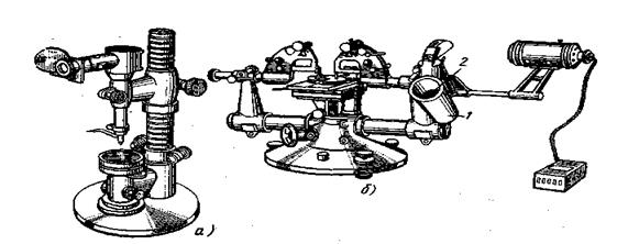 Рис. 6.9. Вертикальный (а) и горизонтальный (б) оптиметры