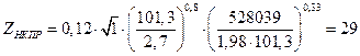 где r В - плотность воздуха при температуре Т 0 = 273, 15 К (r В = 1, 29 кг/м); МЭ, МВ - молярные массы этилена и воздуха (МЭ = 28, 05 г/моль, МВ = 29, 5 г/моль). 2. По формулам (1) и (2) рассчитаем размеры взрывоопасной зоны по горизонтали ХНКПР, УНКПР и вертикали ZHKПP: