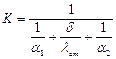 Для многослойной стенки коэффициент теплопередачи определяется по формуле: