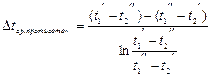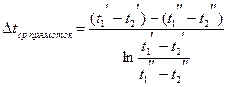 где: F- поверхность теплообмена, м2; К- коэффициент теплопередачи, Вт/м2К Среднелогарифмический тепловой напор определяется: