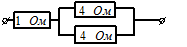| В цепи, схема которой изображена на рисунке, сопротивление каждого из четырёх резисторов 4 Ом. Общее сопротивление цепи равно