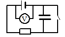 | Схема электрической цепи показана на рисунке. Когда цепь разомкнута, вольтметр показывает 8 В. При замкнутой цепи вольтметр показывает 7 В. Сопротивление внешней цепи равно 3, 5 Ом. Чему равно внутреннее сопротивление источника тока?