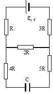 | Чему равна энергия конденсатора емкости С, подключенного по электрической схеме, представленной на рисунке? Величины e, R и r считать известными.