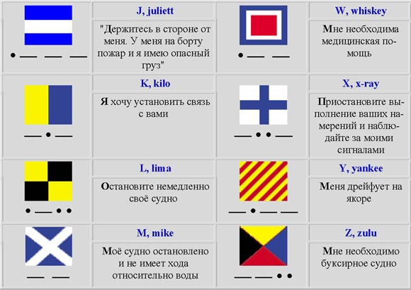 Названия судов или географических мест в тексте флажного сигнала следует передавать по буквам. Если необходимо, то предварительно может быть поднят сигнал YZ " Следующие слова передаются открытым текстом".