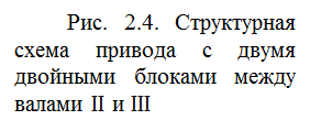 При наличии между двумя валами двух групп передач, например двух двойных блоков, количество их ступеней складывается (рис. 2.4), т. е. Z = Ра ·(Рб + Рс) · Рд =3 · (2 + 2) · 3 = 36 ступеней.