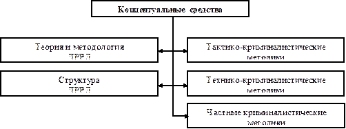 Знаниевые средства ДРРД. Не требует особых доказательств закономерная связь: чем лучше субъект ДРРД знает, какая информация, в каких следах и как запечатляется, тем лучше он умеет: - предвидеть наличие информации (умственные действия); - обнаруживать, фиксировать, изымать информацию (практические действия); - систематизировать ее (умственные действия); - превращать информацию в доказательства (практические действия). Отсюда овладение знаниями означает приобретение средств всякого рода действий (операций, процедур) ДРРД. Происхождение криминалистических средств ДРРД - вопрос особый. Криминалистические средства являются прежде всего результатом развития и совершенствования практики борьбы с преступностью. При этом практика выступает в различных формах: оперативно-розыскная, дознавательская, следственная, экспертная, судебная. Криминалистические науки, изучая эту практику, передовой опыт раскрытия, расследования и предотвращения преступлений, анализирует, осмысливает, а затем совершенствует применяемые в практической деятельности средства борьбы с преступностью. Необходимо отметить и такой важный источник происхождения криминалистических средств, как достижение других наук - естественных, технических, общественных, на базе которых в криминалистике разрабатываются новые и совершенствуются существующие средства. Часть данных иных наук используется в непреобразованном виде, другая часть преобразуется. Но и в том и в другом случаях происходит процесс творческого приспособления данных других наук для решения задач, стоящих перед криминалистикой. Наконец, источником происхождения криминалистических средств борьбы с преступностью являются результаты собственно криминалистических научных изысканий. Знаниевые средства подразделяются на: - информационно-базовые; - концептуальные средства. Классификацию информационно-базовых и концептуальных средств см. на рисунках.
