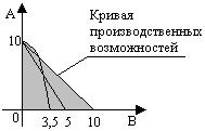 Кривая производственных возможностей показывает, что альтернативные (вме-ненные) издержки растут. Это закон возрастания вмененных издержек. Кривая производственных возможностей иллюстрирует: 1. Редкость ресурсов предполагает неосуществимость всех вариантов выпуска про-дуктов А и В (всех вариантов, расположенных с внешней стороны кривой).