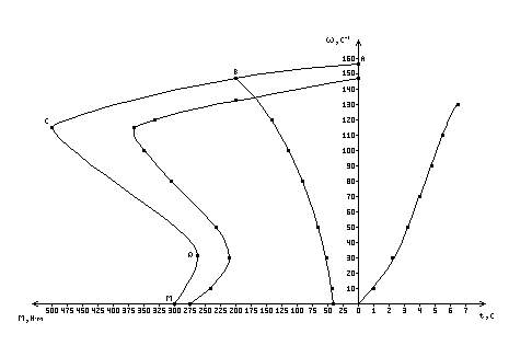 де j – зведений до вала електродвигуна момент інерції системи, кг· м2; Мдин.сер.і – середнє значення динамічного моменту на і-тій ділянці, Н· м. Масштабом часу mt (с/см) задаються так, щоб майбутня крива ω = f (t) розмістилась у першому квадранті прямокутної системи координат в межах рисунка. Розрахунок зручно вести у таблиці.
