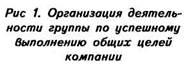 Содержание человеческих отношений, психологический климат в группе, стиль руководства и другие социально-психологические феномены для руководителей низового звена управления и персонала являются наиболее значимыми аспектами их трудовой деятельности. Явно отрицательным психологическим фактом является непонимание руководителями того, что их негативные оценки своих подчиненных снижают личностную самооценку, подрывая у исполнителей веру в свои силы и возможности. Получив отрицательную оценку, работник непроизвольно снижает активность в труде, отказывается от инициативы. При положительной оценке работника повышается мотивационная сфера, желание трудиться лучше. Руководители, обладая определенным статусом, несут на себе морально-психологическую нагрузку в виде права на оценку своих подчиненных и результатов их труда, от которой в значительной степени зависит трудовая активность персонала. В конечном итоге организация служит людям, но, если она начинает работать в режиме сбоев, тогда люди будут вынуждены изменить ее. На рисунке 1 показана организация деятельности группы по успешному выполнению целей компании, а в таблице 1 — факторы, способствующие устранению противоречий внутри управления организацией.