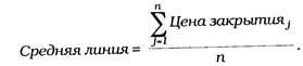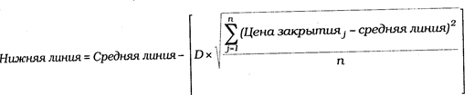 РАСЧЕТ Полосы Боллинджера формируются из трех линий. Средняя линия — это обычное скользящее среднее. В нижеследующем выражении «n» обозначает число единичных отрезков времени, составляющих период расчета скользящего среднего (напр., 20 дней).