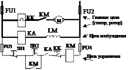 Цепи возбуждения: - их токи меньше, чем в главных цепях, но в мощных эл.приводах выполняются проводниками большого сечения, поэтому изображаются в толстых линиях.